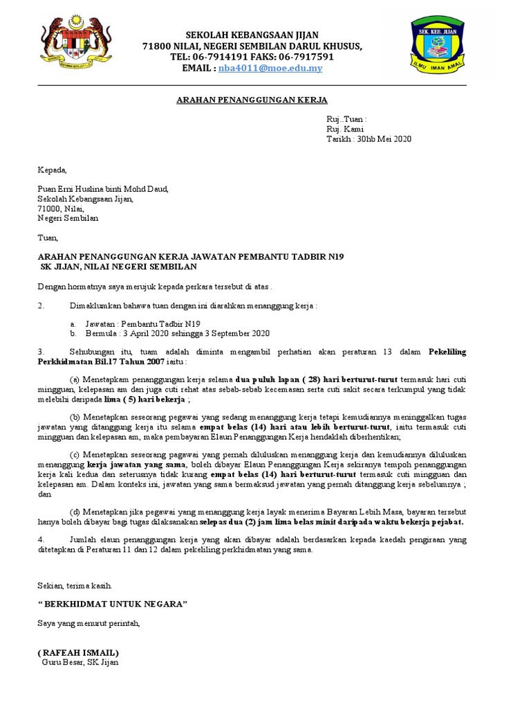 Contoh Surat Arahan Tanggung Kerja Pdf